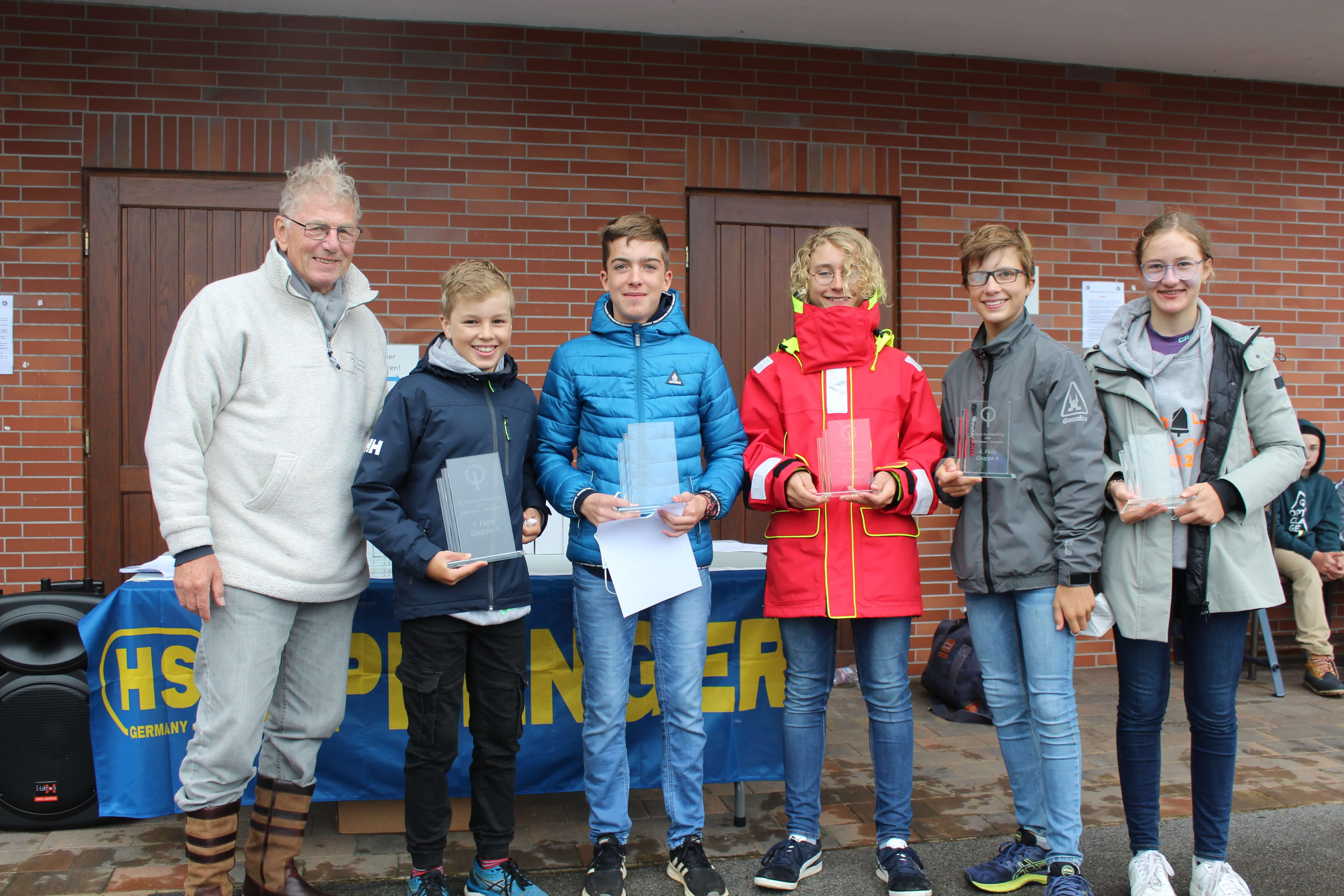 Am Samstag musste die vierte Wettfahrt wegen zu gravierender Winddreher abgebrochen werden. Wettfahrtleiter Günther Nülle schickte das Feld daher früher als geplant in den Hafen. Dort erwartete die Jüngstensegler eine große Tombola mit hochwertigen Bootszubehör des Sponsors HS Sprenger aus Iserlohn.