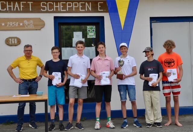 Leonard von Holtum und Josh Berktold (beide ETuF) konnten sich in diesem Jahr auf dem heimischen Revier durch eine konstante Wettfahrtserie (1, 2, 1, 1) den begehrten Pokal für den Landesjugendmeister NRW sichern. Vizemeister (2, 3, 2, 2) wurden Paul Sigge und Konstantin von Holtum (beide ETuF), gefolgt von Tim Kohlschmidt und Lasse Paland (ETuF/SKS) auf Platz 3 (5, 1, 5, 4).