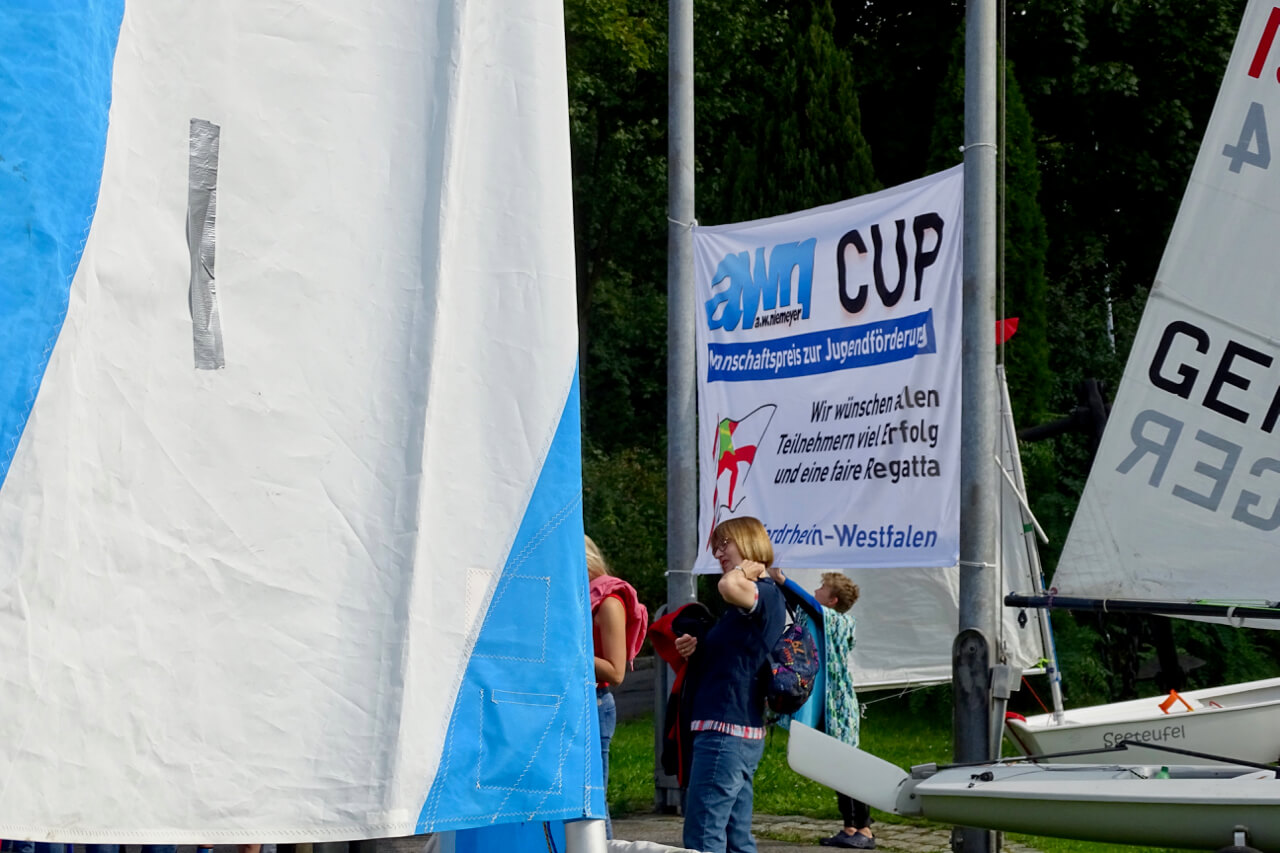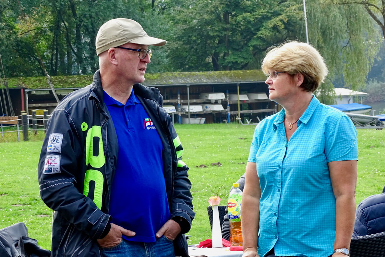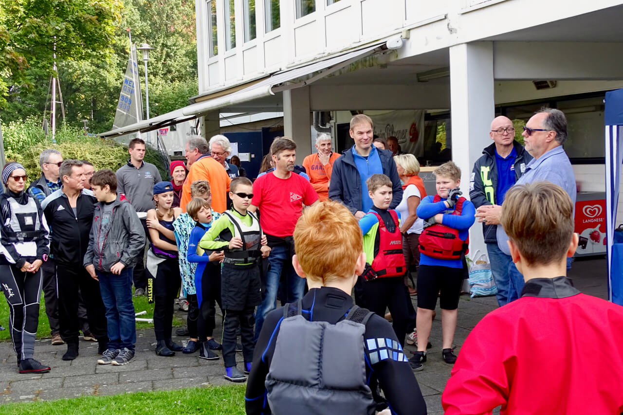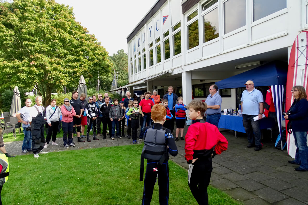 "Da kann man nix machen", so Barbara Rheinbold, die mit Ihrem Info- und Verkaufsstand von A.W. Niemeyer den Sponsor dieses Events vertrat. Der Wind wollte sich einfach nicht einstellen. Trotzdem erlebten die Seglerinnen und Segler aller Altersstufen von fast 40 gemeldeten Booten einen schönen und sonnigen Tag bei Standup-Paddling, kühlen Getränken und heißem BBQ. "Eine faire Wettfahrt ist unter diesen Umständen nicht durchführbar, aber wir wiederholen das Ganze" sagte Barbara Rheinbold bei der Verabschiedung.
