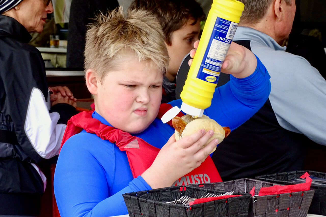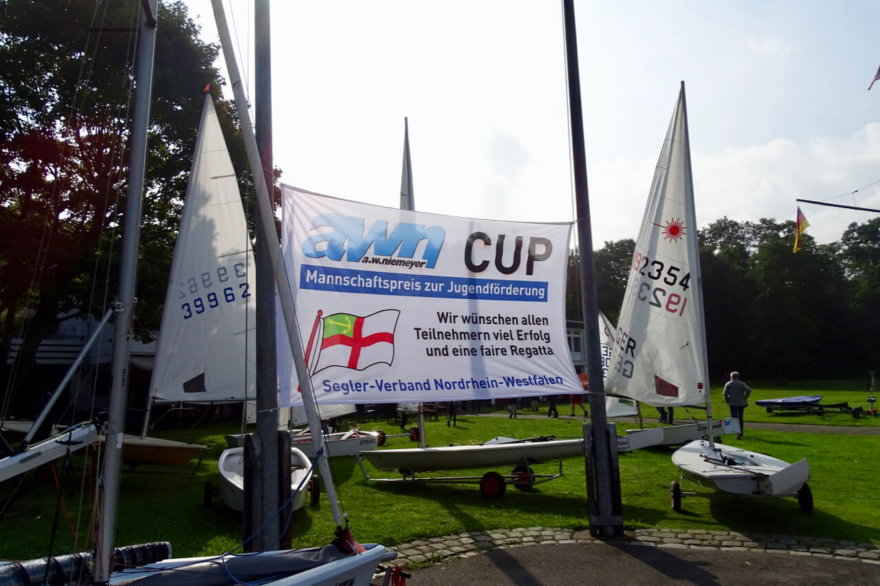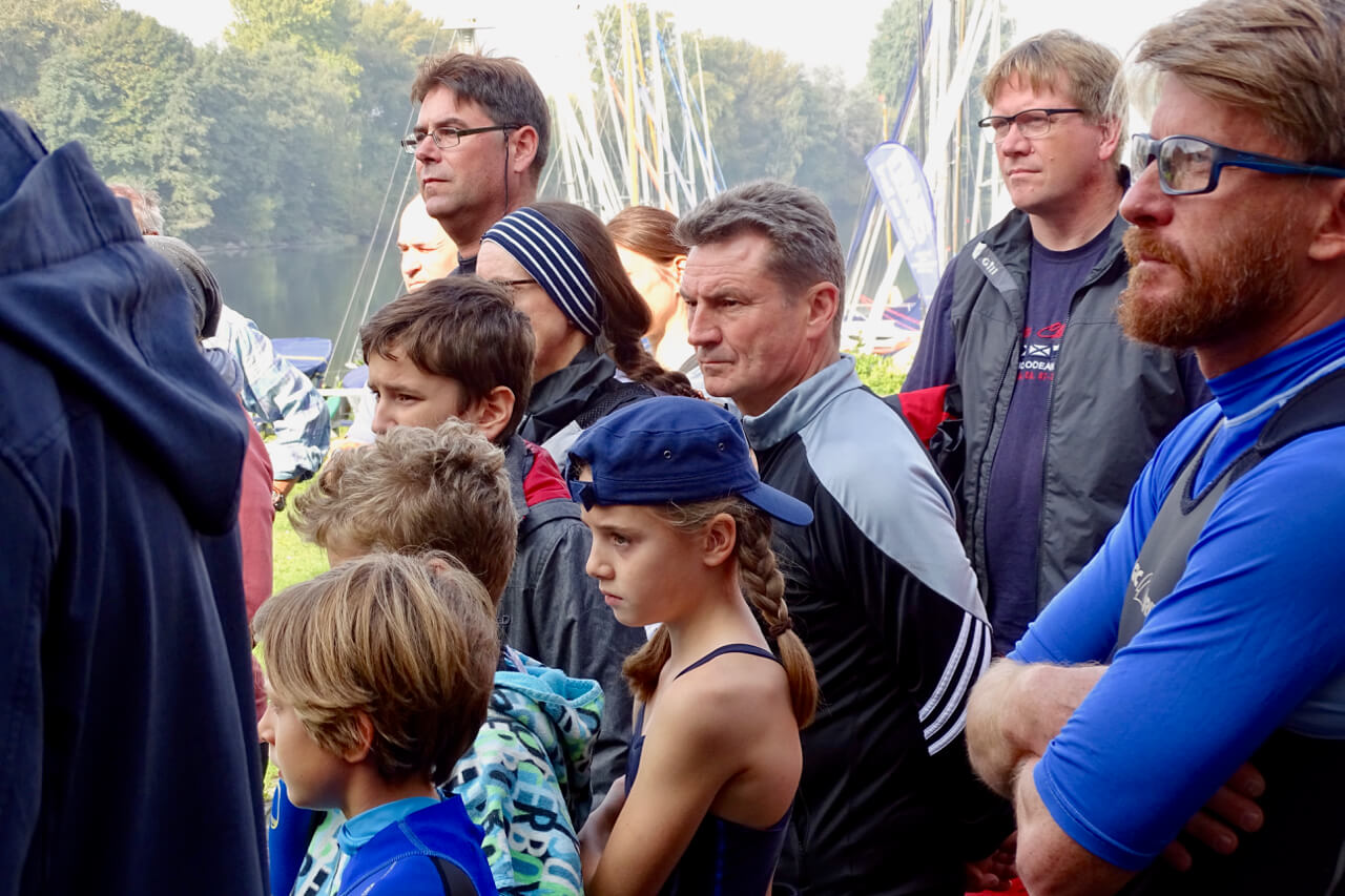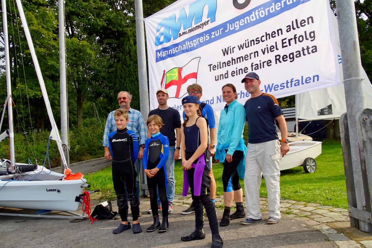"Da kann man nix machen", so Barbara Rheinbold, die mit Ihrem Info- und Verkaufsstand von A.W. Niemeyer den Sponsor dieses Events vertrat. Der Wind wollte sich einfach nicht einstellen. Trotzdem erlebten die Seglerinnen und Segler aller Altersstufen von fast 40 gemeldeten Booten einen schönen und sonnigen Tag bei Standup-Paddling, kühlen Getränken und heißem BBQ. "Eine faire Wettfahrt ist unter diesen Umständen nicht durchführbar, aber wir wiederholen das Ganze" sagte Barbara Rheinbold bei der Verabschiedung.