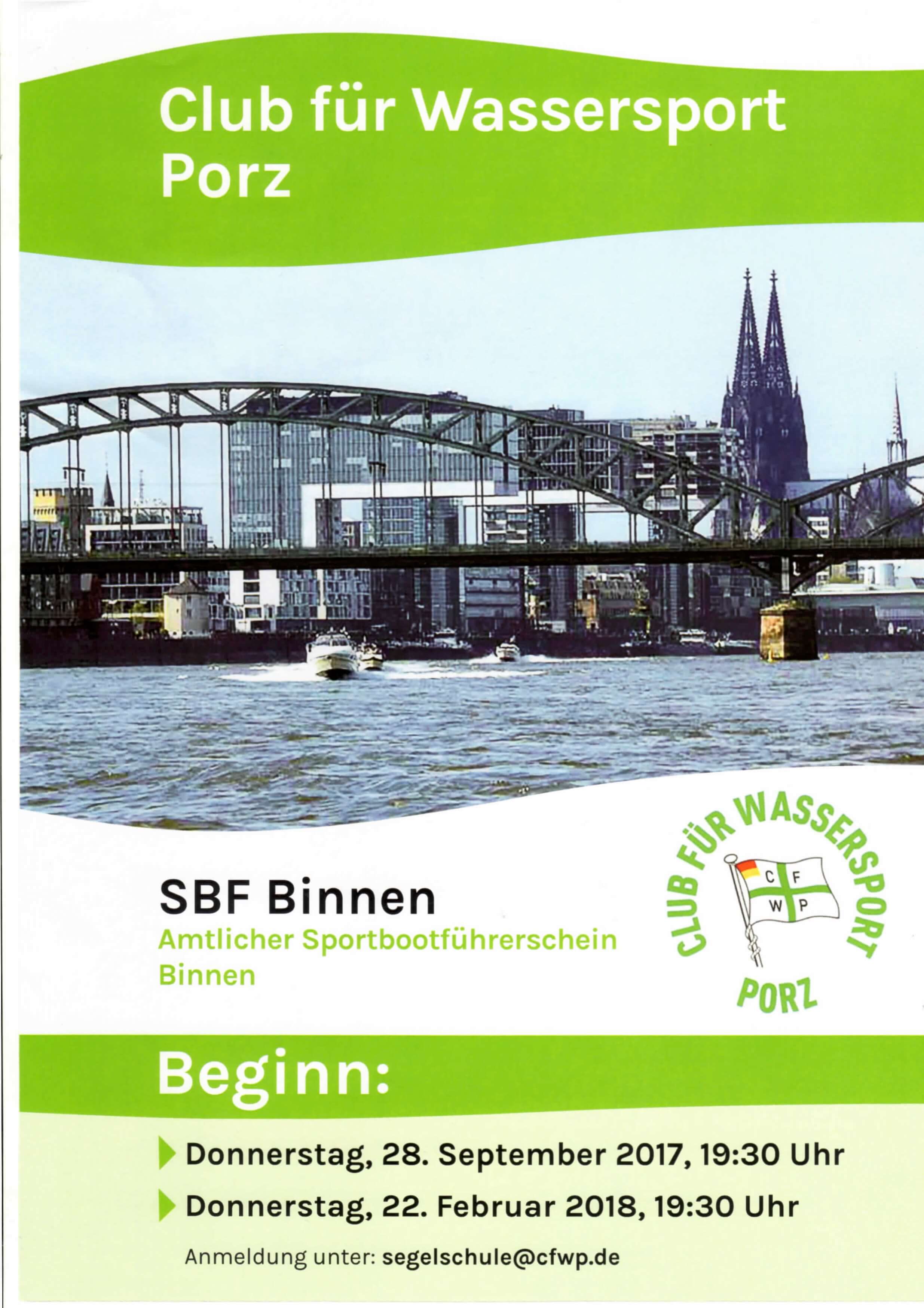 Der Club für Wassersport Port bietet die Ausbildung zum Amtlichen Sportbootführerschein Binnen (SBF Binnen) an. Start ist am 22.02.2018