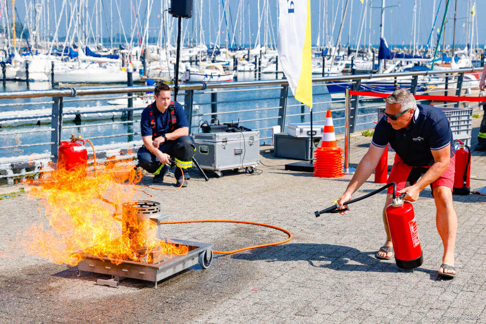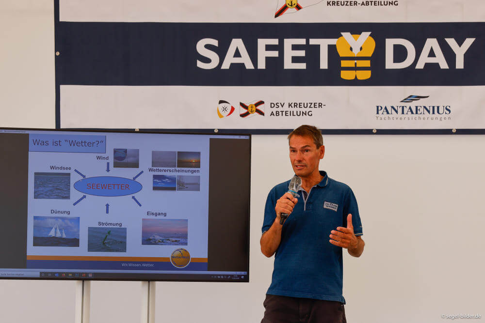 Wie ein Leck schnell abgedichtet wird, zeigte die Crew der Segelschule Well Sailing. Denn auf der präparierten Yacht MERI CRASH wurde ein Wassereinbruch simuliert, Besucher bekamen wertvolle Tipps zur effektiven Abdichtung. Umfassende Informationen über den sicheren Zustand des Riggs, um für alle Wetterbedingungen gewappnet zu sein, hielt Rigg-Spezialist Uli Münker von Faber & Münker bereit. Und mit dem Thema „Immer gutes Wetter“ zeigte Seewetterexperte Dipl.-Meteorologe Dr. Meeno Schrader von WetterWelt, was zu tun ist, um schlechtes Wetter zu vermeiden. Der beliebte TV-Moderator des Schleswig-Holstein Magazins sorgte auch am Veranstaltungstag für Sonnenschein.