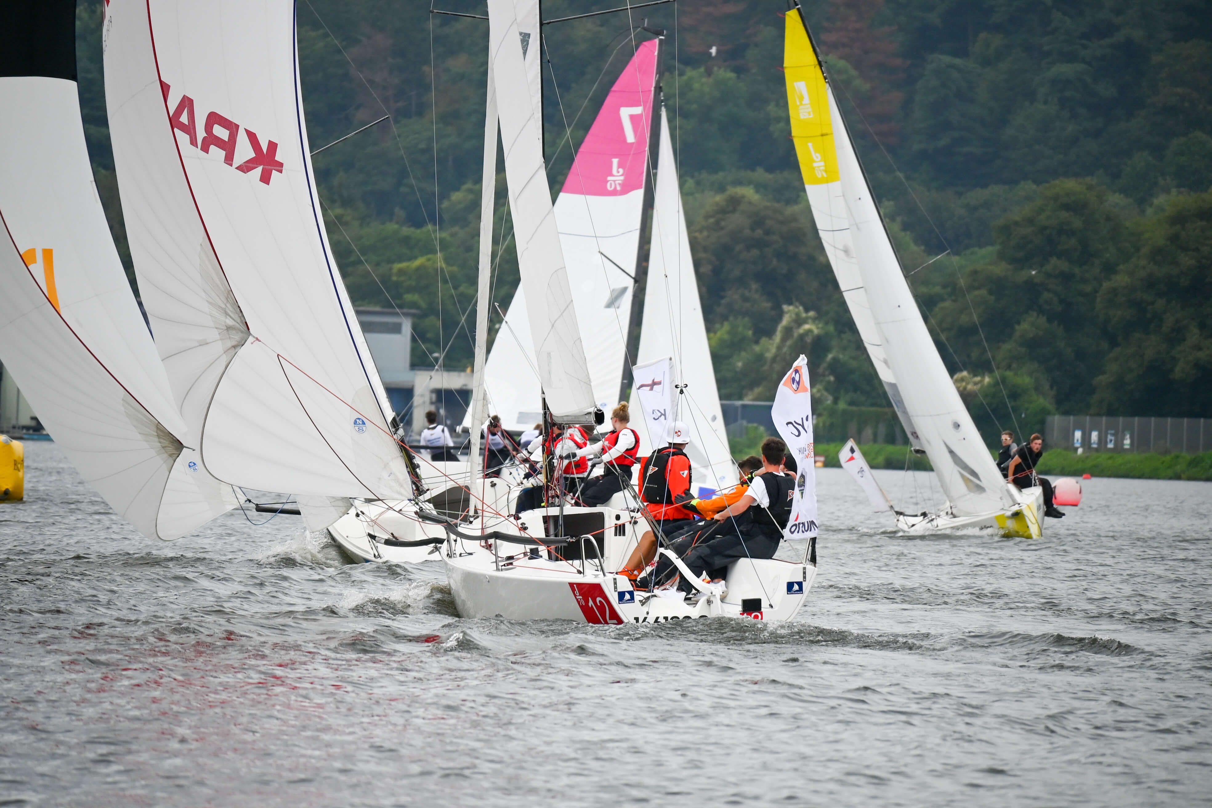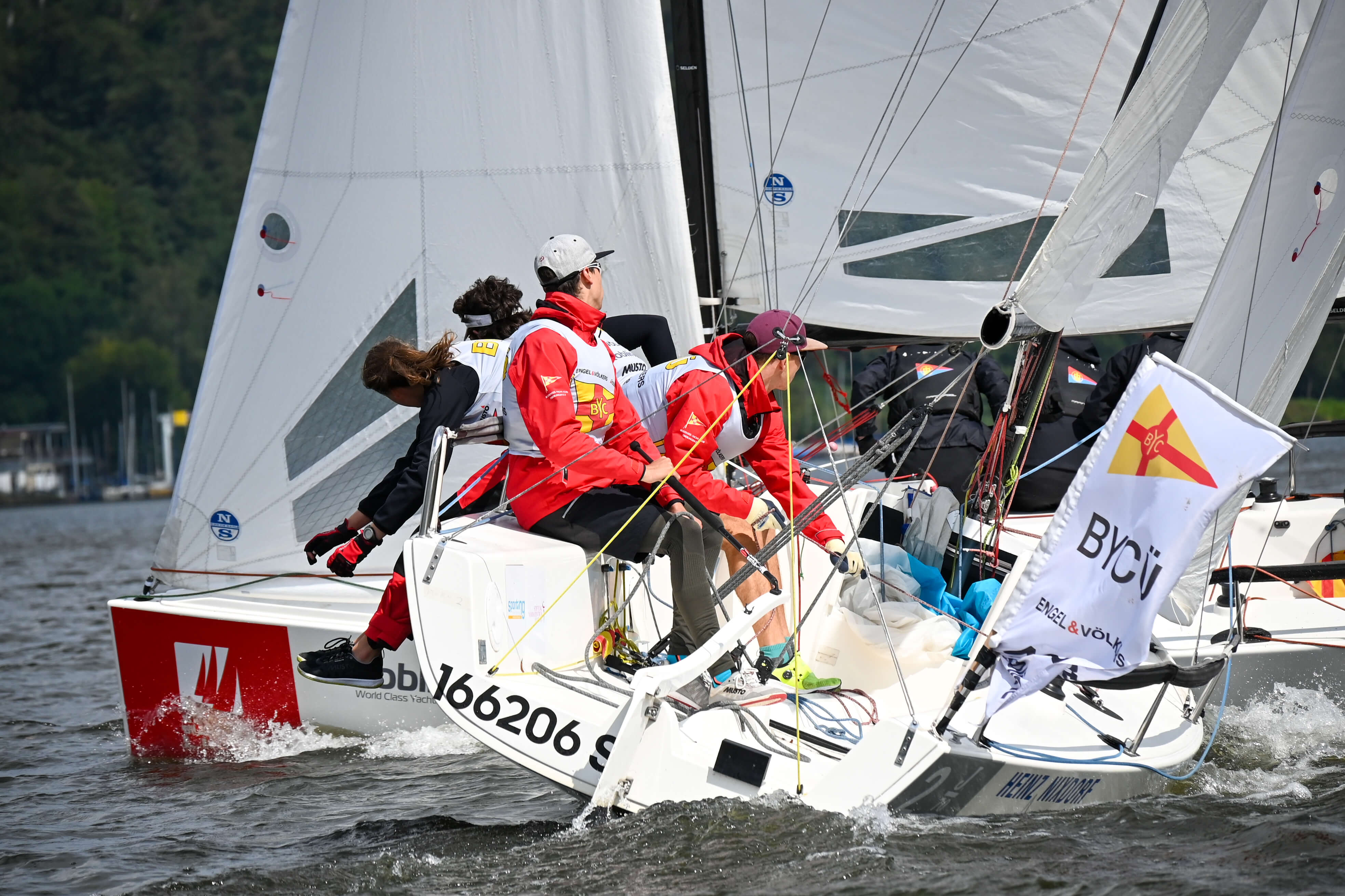 Unser Team bestand aus dem olympiaerfahrenen internationalen Schiedsrichter Jan Stage aus Dänemark, Wolfgang Daum aus Bochum, Christine Guba aus Frankfurt am Main und mir. Leider waren die Wetterbedingungen bei Dauerregen und drehendem Leichtwind nicht besonders gut. Der Wind kam überwiegend aus nördlichen Richtungen auf dem hauptsächlich in West-Ost-Richtung gelegenen Baldeneysee.