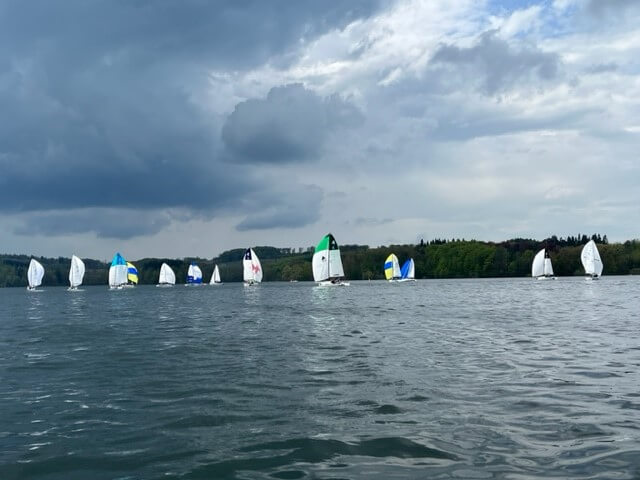 Bei sehr schwierigen Bedingungen konnten am Samstag drei Wettfahrten gesegelt werden. Nach einem gelungenem Abendprogramm brauchten die Segler am Sonntag etwas Geduld. Am Ende wurde das Warten mit 2 Läufen am Sonntag doch noch belohnt. Der Titel des Landesmeisters 2023 ging an die Crew von der Bevertalsperre vom SVWU mit der Ingo Binder am Steuer. Den 2. Platz belegte das Team vom Bocholter Yachtclub mit Kolja Paus an der Pinne. Dritter wurde Holger Neuhaus mit seinem Team vom WYD.