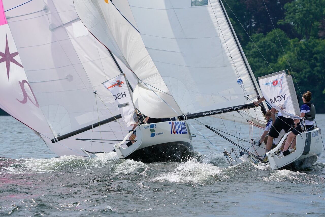 Nach nur 3 Flights am Sonntag und 5 am Samstag, haben wir so an 2 Tagen 8 x 3 = 24 Rennen gefahren und sahen den BYCÜ als Sieger nach spannendem Fight mit den Kielern vom KYC. Stark auch VSaW, LSV und der BohYC.