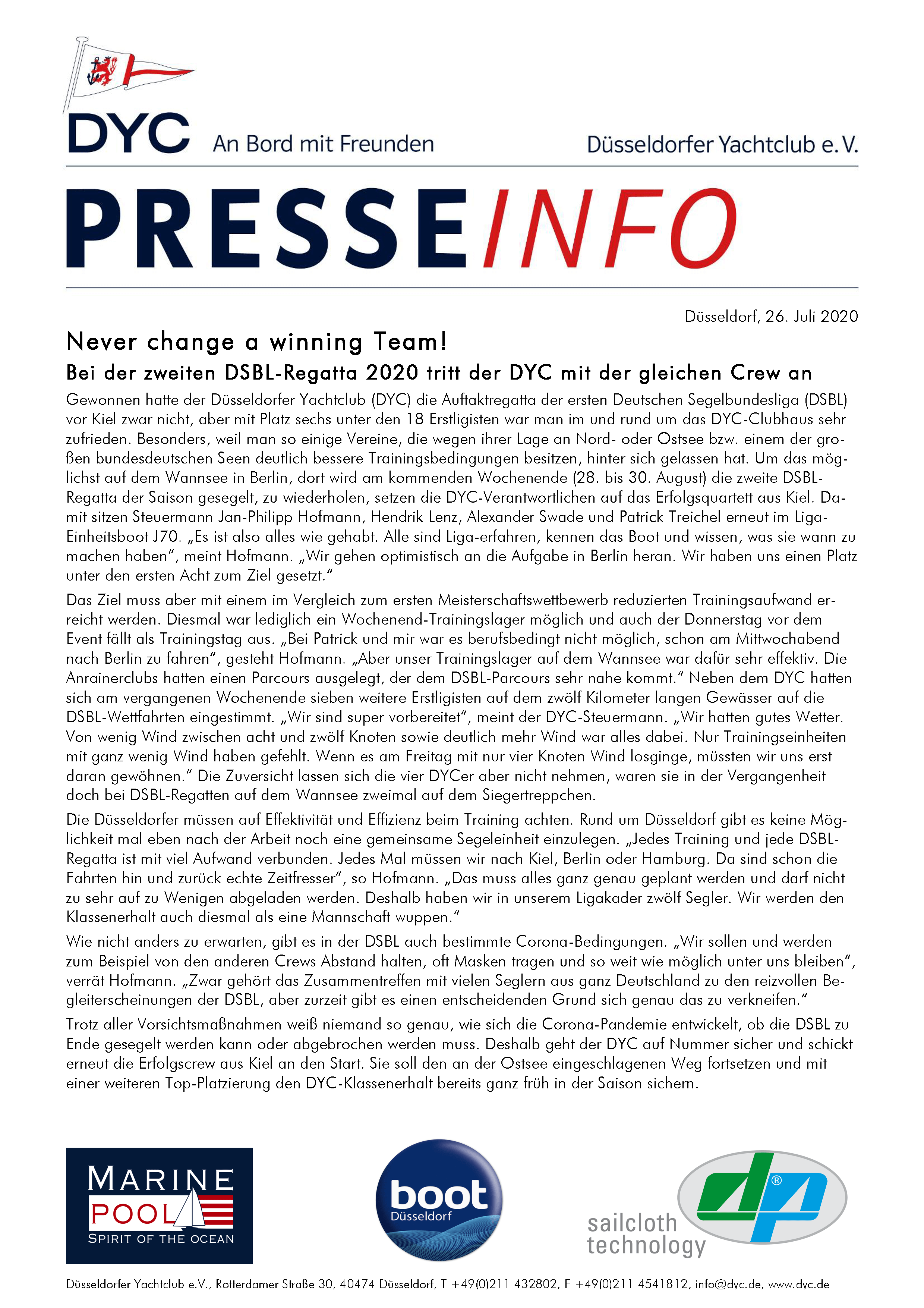 Bei der zweiten DSBL-Regatta 2020 tritt der DYC mit der gleichen Crew an