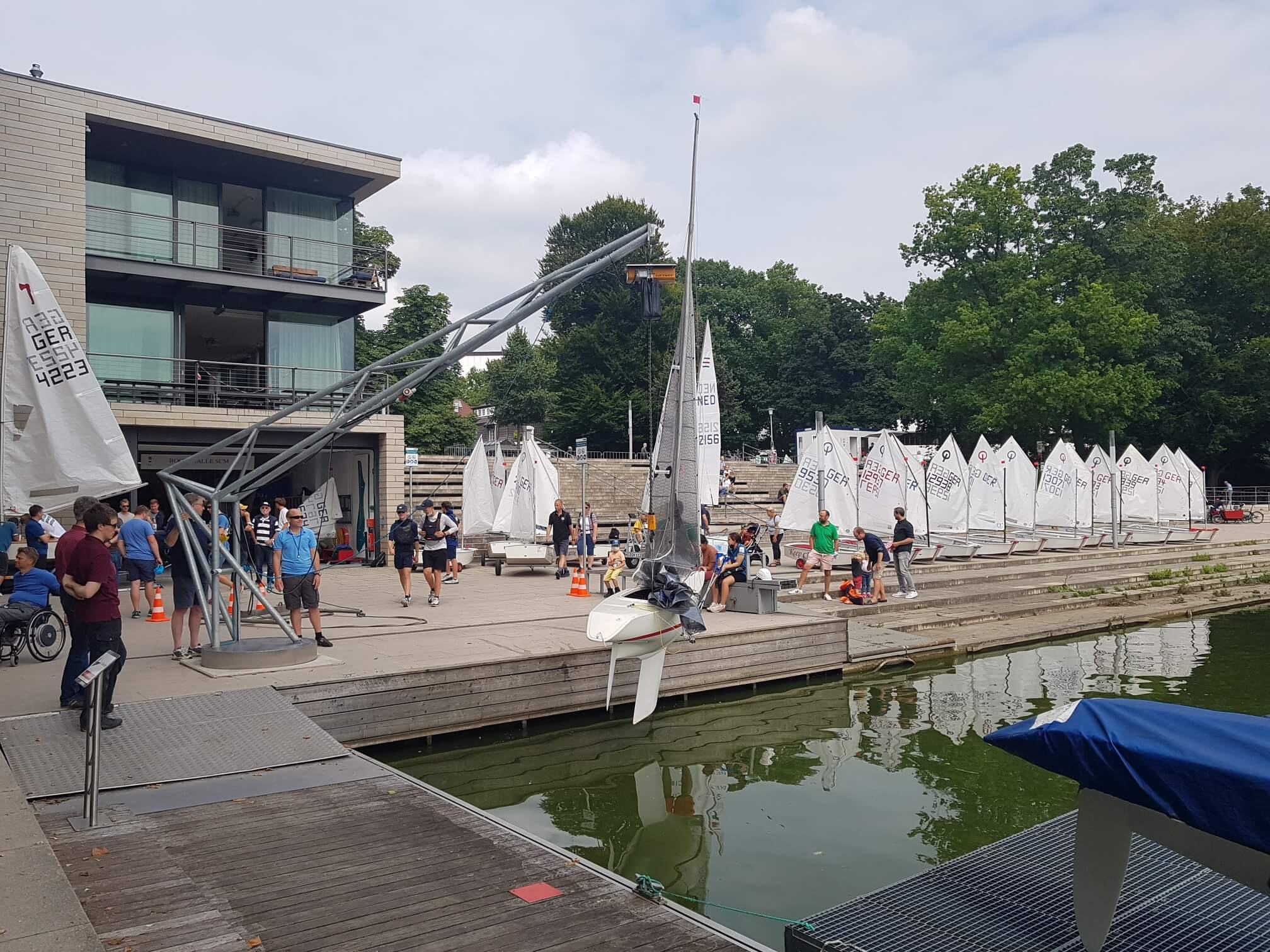 Wichtig war in Rahmen des Möglichen zusammen zu stehen, die Boote vorzubereiten und dann wirklich gemeinsam zu starten und zu segeln. Vom kleinen Optimisten über die ganze Palette der SCM Bootsklassen (C55, Pirat, und Yardstick Klassen) bis zu den großen Rennyachten war alles am Start. Leider nur der Wind nicht.