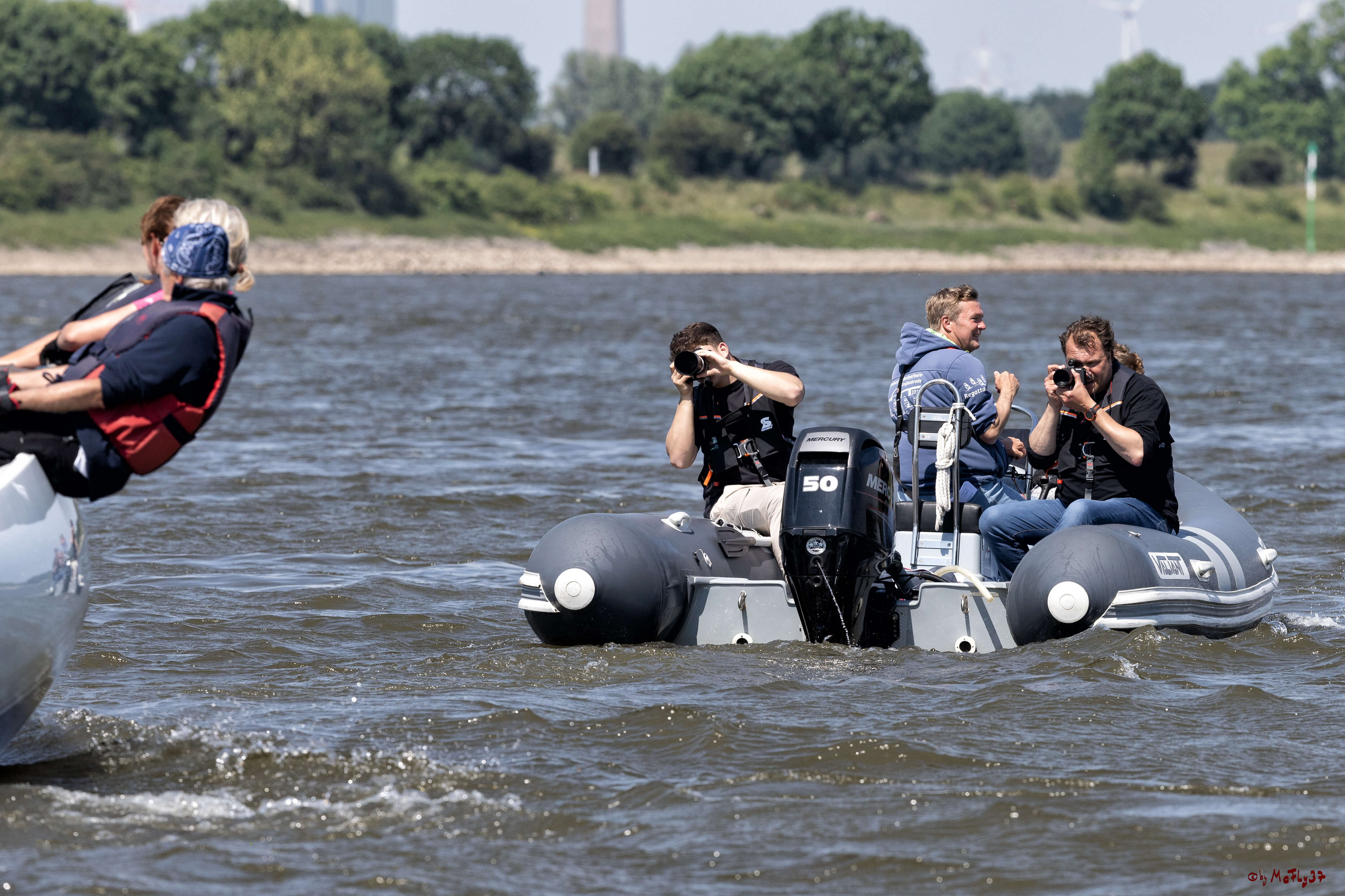 Fünf ambitionierte Fotografen trafen sich in Duisburg um von den beiden Profifotografen Andreas Dick und Thomas Michaelis die Besonderheiten der Sportfotografie auf dem Wasser zu erlernen. Nach einer kurzen Vorbesprechung und einem Check der Ausrüstung, fuhr die Gruppe auf zwei Festrumpf-Schlauchbooten, der von Düsseldorf kommenden Regatta entgegen.