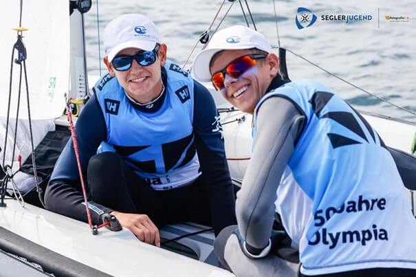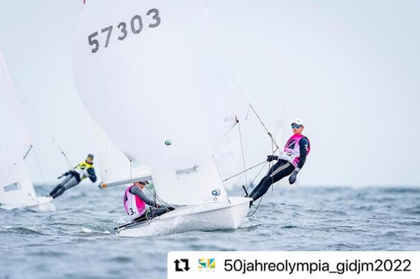 In den letzten sechs Tagen fand in Kiel die Gemeinsame Internationale Deutsche Meisterschaft aller Jugendbootsklassen anlässlich des 50-jährigen Jubiläums der Olympiade 1972 statt. Mit einem an den Wettkampf vorangegangenen Vortraining bereiteten wir (Leonard von Holtum, Josh Berktold, Sofie Tillmann und Catie Mülders) uns mit unserer Trainingsgruppe um unseren Trainer Gerd Eiermann auf diese prestigeträchtige Regatta vor. Im Vortraining hatten wir das Glück bei Stark- und Leichtwind an verschiedenen Tagen trainieren zu können, um für alle Eventualitäten gewappnet zu sein. Bei der Regatta herrschten dann mittlere Windbedingungen, bei denen wir mit zwei zweiten Platzierungen und einem dritten Platz sehr zufrieden waren.