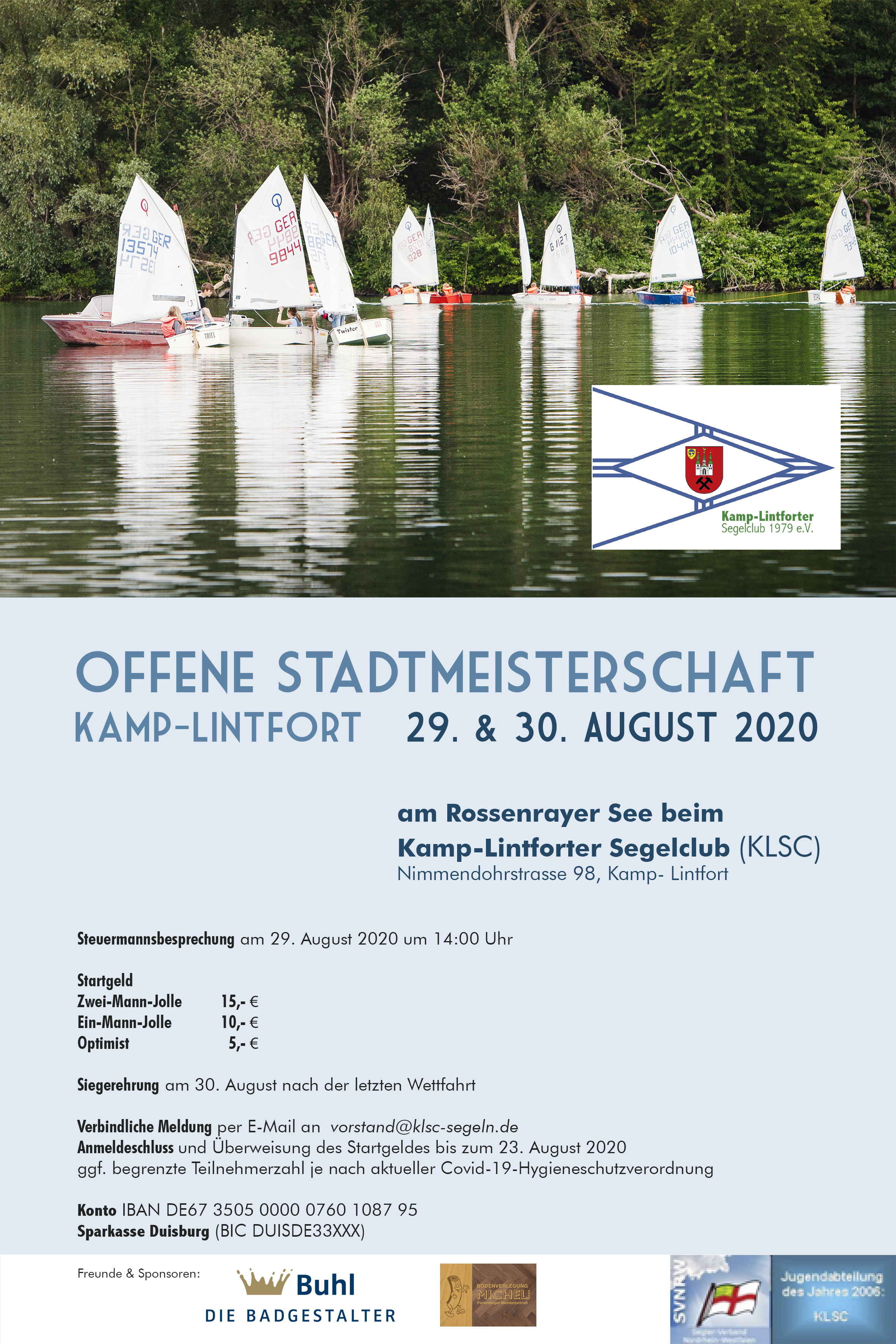 Am letzten August-Wochenende richtet der KLSC in Kamp-Lintfort die Offene Stadtmeisterschaft 2020 aus.