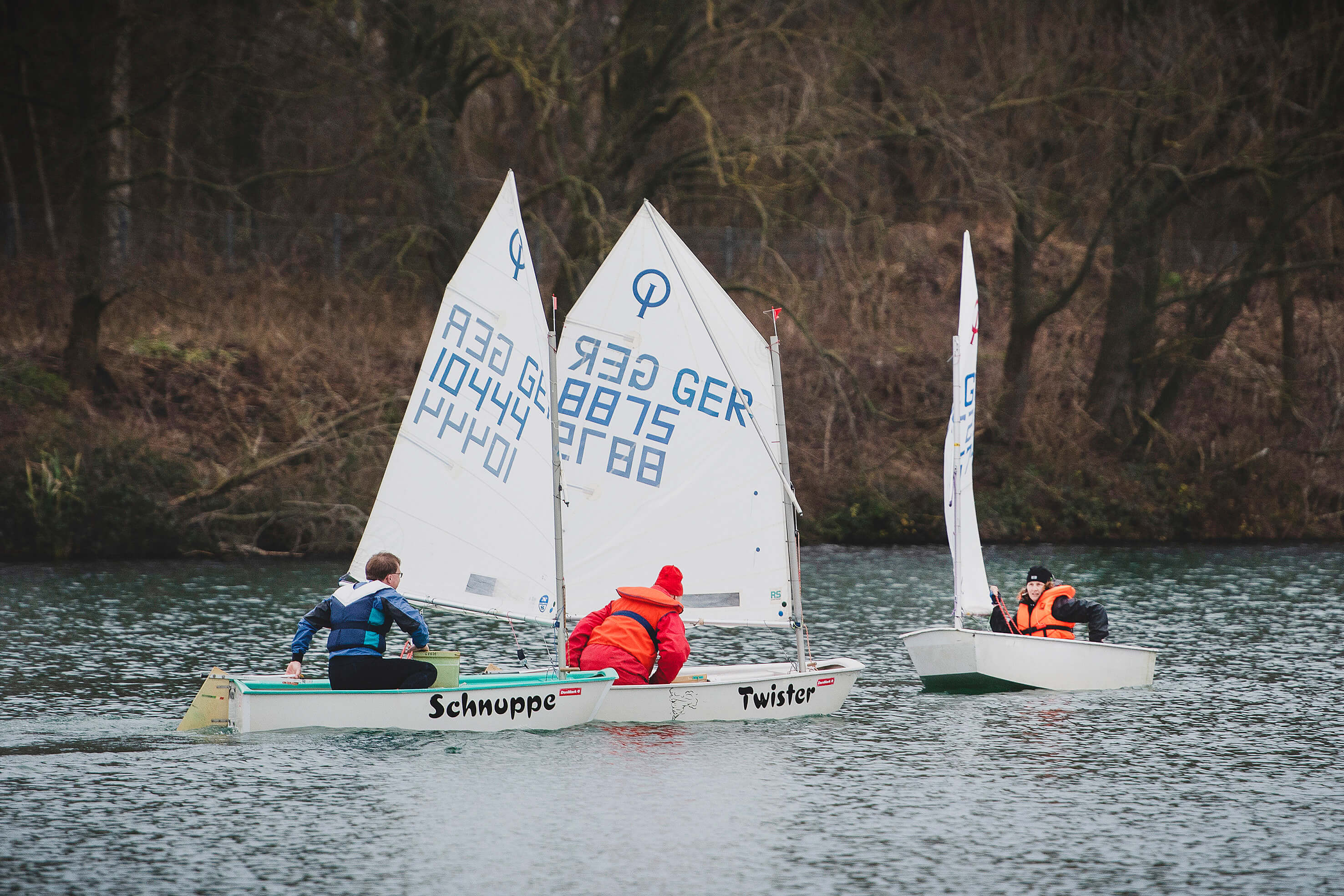 Thorsten Rech, Dirk Postel und Anneke Ratering auf den kleinen Booten Optimisten bei der