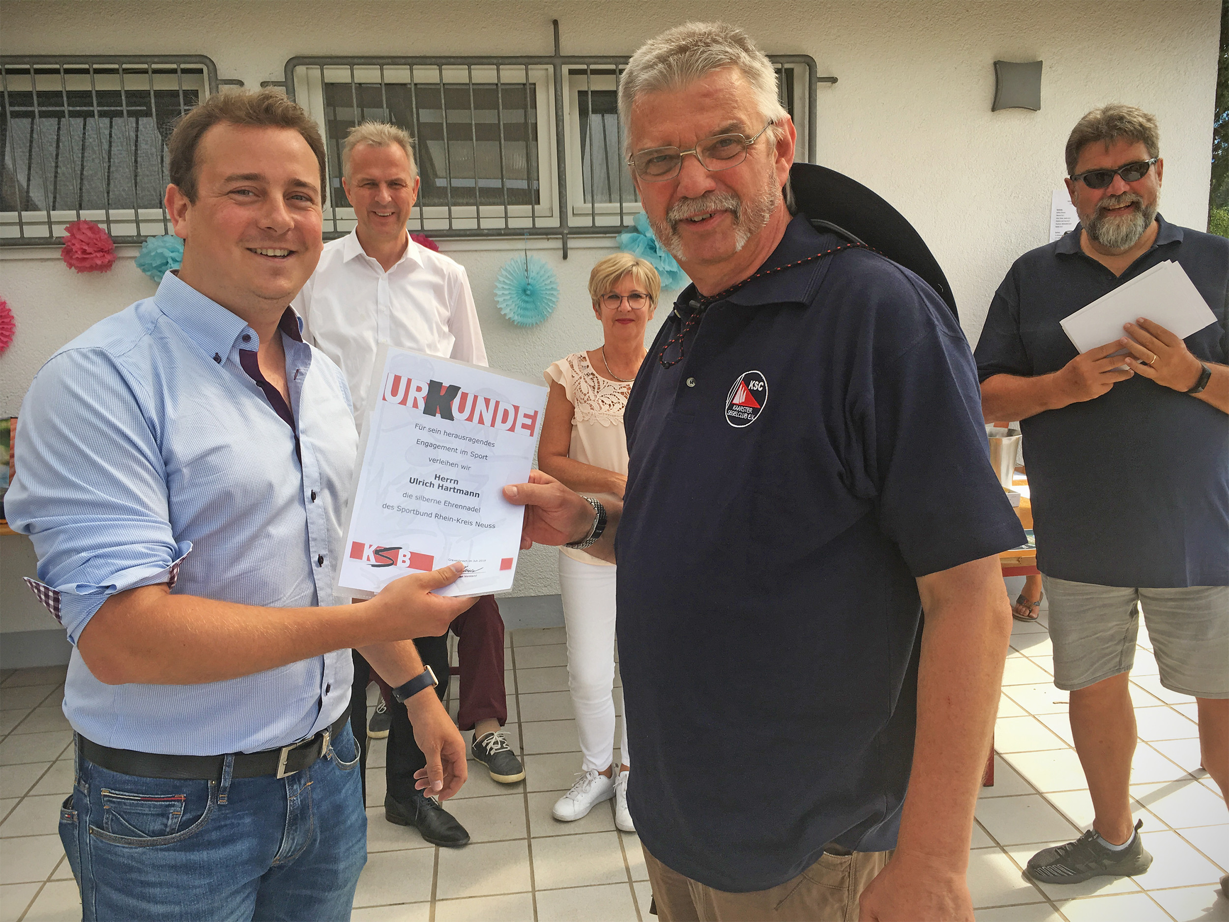 Dieser betonte in seiner Laudatio, dass ein Vereinsleben ohne Menschen im Ehrenamt nicht möglich sei: „Dass der Kaarster Segel-Club den Generationenvertrag lebt und vor allem den anderen Mitgliedern vorlebt und diese Mitglieder auch wertschätzt, konnte man am Samstag erneut feststellen. Es war mir eine große Freude, Herrn Ulrich Hartmann mit der silbernen Ehrennadel des Kreissportbundes Neuss auszeichnen zu dürfen.“