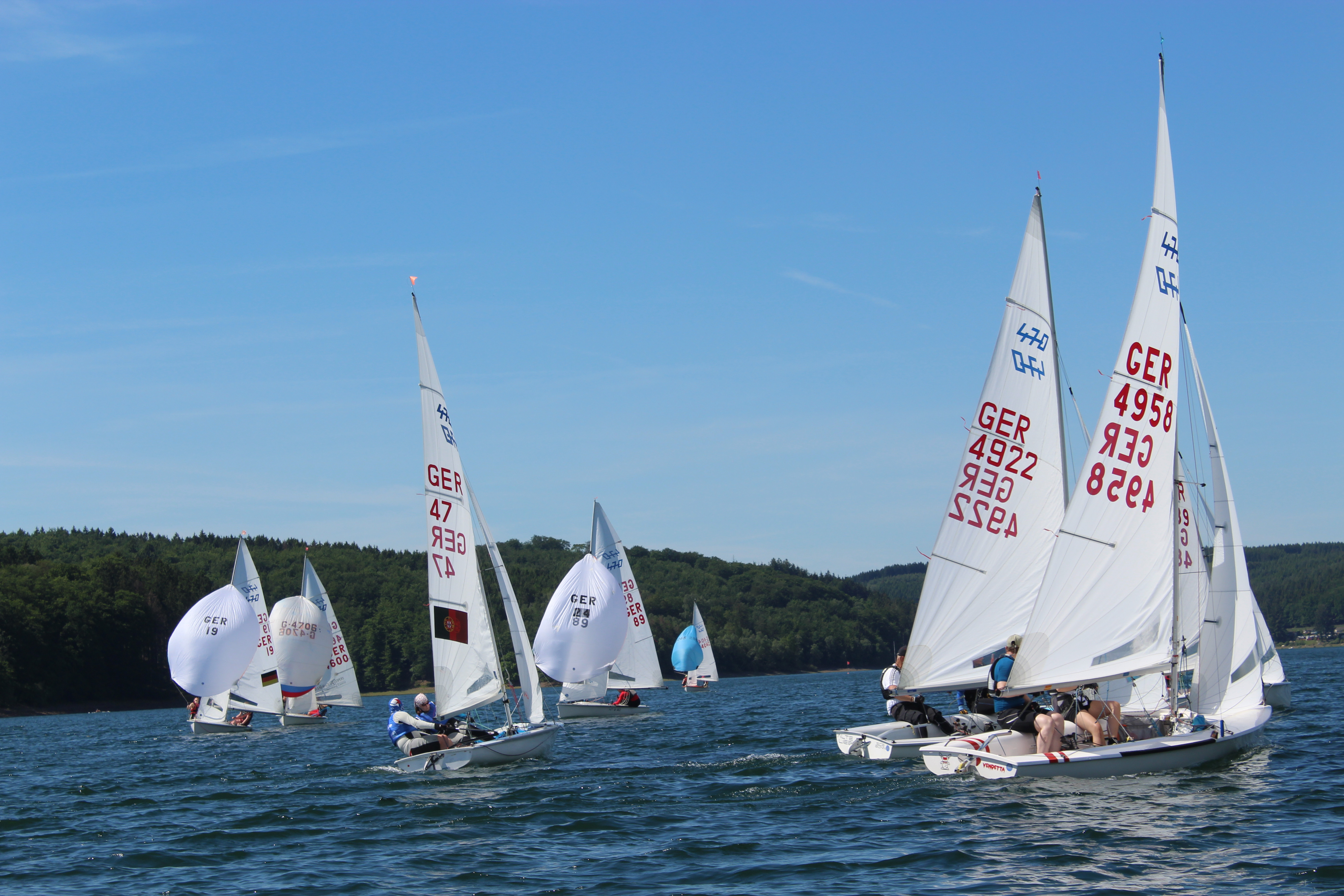 Nachdem am Samstag bei gutem Wetter, aber schlechten Windverhältnissen nur ein Lauf beendet werden konnte, folgten am Sonntag vier Wettfahrten bei idealen Bedingungen. Tolles Sonnenwetter und Windstärken zwischen 4 und 6 verlangten den Seglerinnen und Seglern alles ab. Am Ende konnten sich Stephan Möller vom Segel-Club-Sorpesee Iserlohn (SCSI) über den vierten Gesamtrang, Jannis Meyer den 6. Platz und Frank Meyer über den 7. Platz bei den RSAero freuen (beide vom KSCH). In dieser Klasse gewann überlegen Sebastian Fuchs aus Pulheim. Bei den 470ern setzte sich am Ende die Crew Kristof Duffing (Leverkusen) und Jan Kaminski (Langen) durch. Die heimische Mannschaft Phylllis Solveig-Vogt (KSCH) und Diana Bruch (Yachtclub Sorpesee) errang Gesamtrang 12.