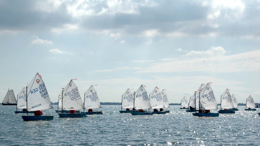 Fast 80 Optimist-Seglerinnen und -Segler waren mit ihren Eltern und Trainern in die Niederlande gereist, um auf dem großen Revier um den Titel des Landesjüngstenmeisters zu segeln. Das IJsselmeer zeigte sich in diesem Jahr von seiner milden Seite. Bei Sonnenschein und angenehmen Temperaturen konnten die Seglerinnen und Segler am Samstagmorgen bei der Steuermannsbesprechung begrüßt werden. Über die leichten Winde freuten sich die Kleineren und die Größeren waren froh, dass wenigstens das Wasser flach blieb und sich die gefürchtete kurze, steile IJsselmeer-Welle noch nicht aufbaute.