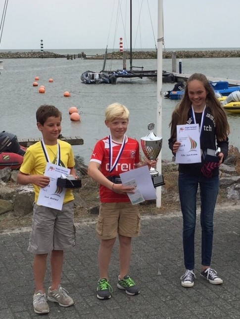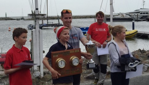 Eine große Siegerehrung rundete die Veranstaltung ab. Geehrt wurde zunächst das Team des Yachtclub Lister vom Biggesee mit seinem Trainer, der mit 12 Opti-Kindern das größte auswärtige Clubteam stellte und eine „Bierkiste“ mit 12 Trinkflaschen bekam. Danach wurden die zahlreichen Preise, Medaillen, Pokale, Maßbänder und verschiedenste, von den Sponsoren gestiftete Sachpreise verteilt und natürlich die Landesjüngstenmeister durch Olaf Reckers als Vertreter des SVNRW geehrt und gefeiert.