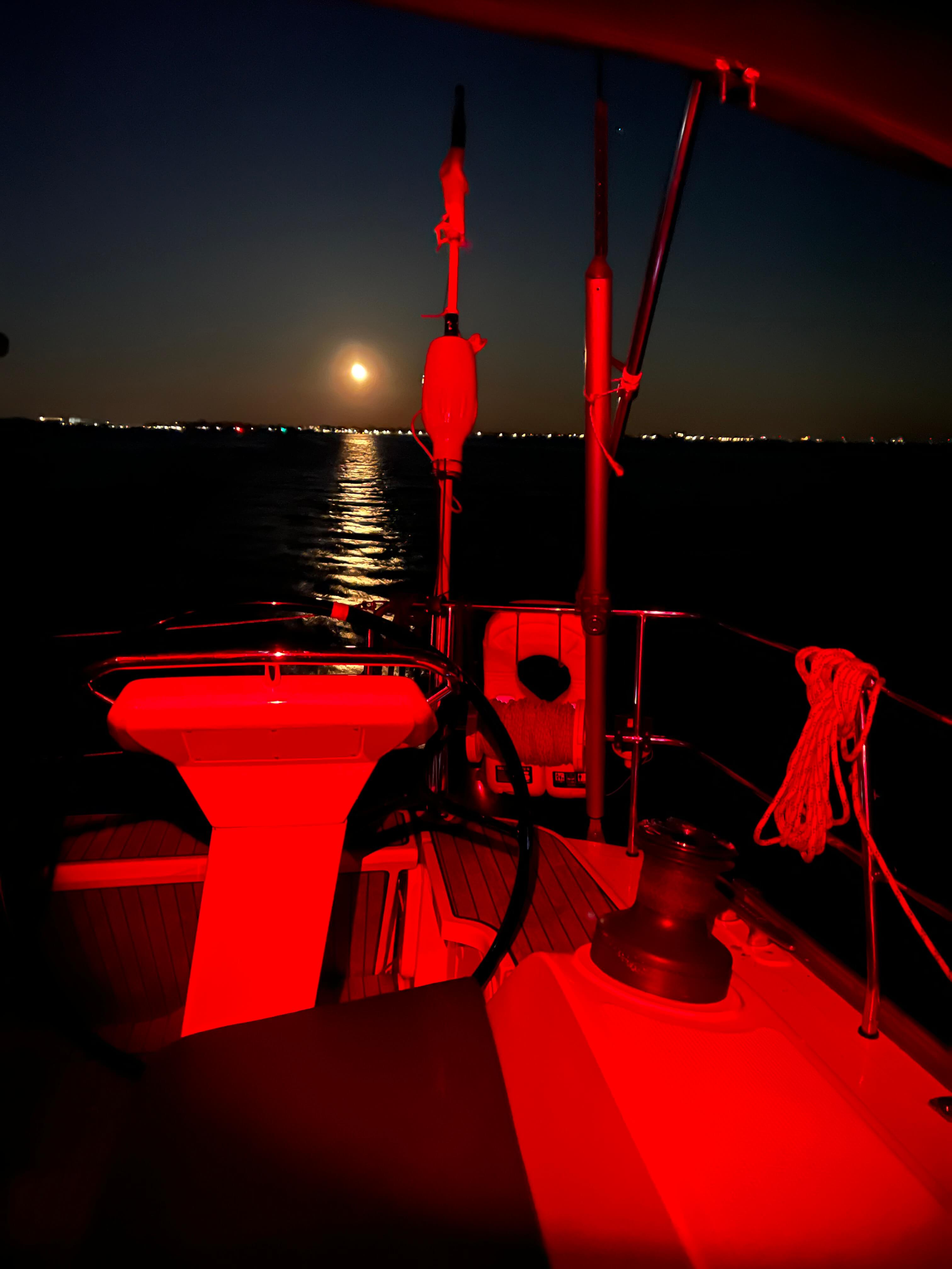 Während der Nachtfahrt ist allenfalls Rotlicht an Deck erlaubt.
