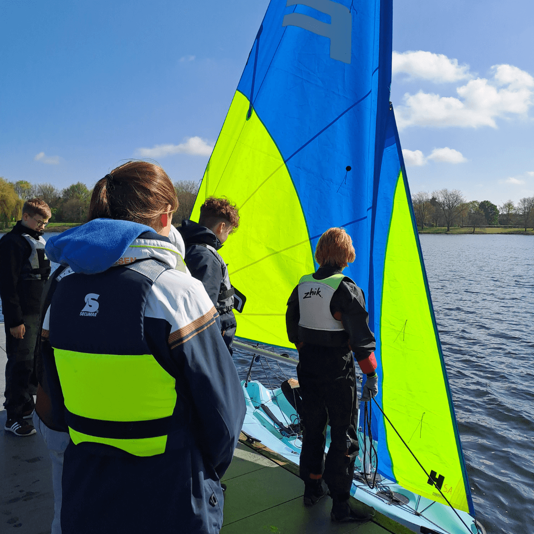 Zu Gast beim Bocholter Yacht Club e.V. lernten sie angeleitet von Theresa Neu praxisnah Inhalte zur Unterstützung des Vereinstrainings kennen.