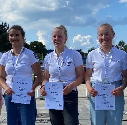 Im ILCA 6 war Pia Conradi vom Duisburger Yacht-Club am Start. Nach 4 Wettfahrten am Sonntag lag sie noch auf Platz 6, wenn auch mit sehr geringen Punktabständen. Am Pfingstmontag gab Pia dann richtig Gas und segelte konstant in allen 3 Wettfahrten den 2. Platz. Damit wurde sie im Gesamtklassement Zweite hinter Hannah Anderson (Warnemünder Segel-Club). Den dritten Platz belegte Gesa Papenthin (PYC).