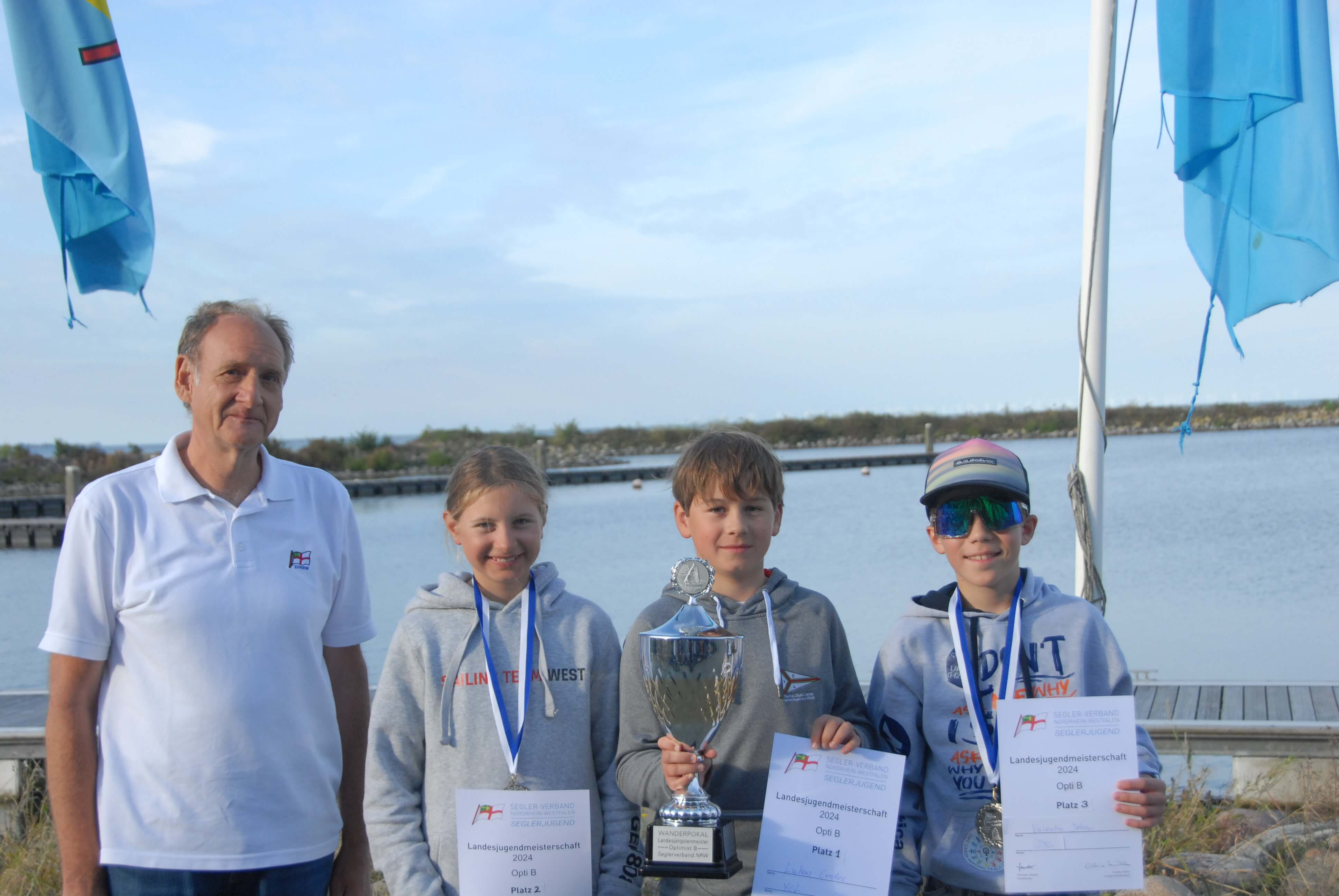 Da die Pinta Opti-Trophy gleichzeitig die Landesjugendmeisterschaft des SVNRW ist, war der Vorstand Leistungssport des Segler-Verband Nordrhein-Westfalen Dr. Uwe Flachsenberg angereist, gratulierte herzlich und überreichte den neuen Landesmeistern NRW 2024 ihre Urkunden: