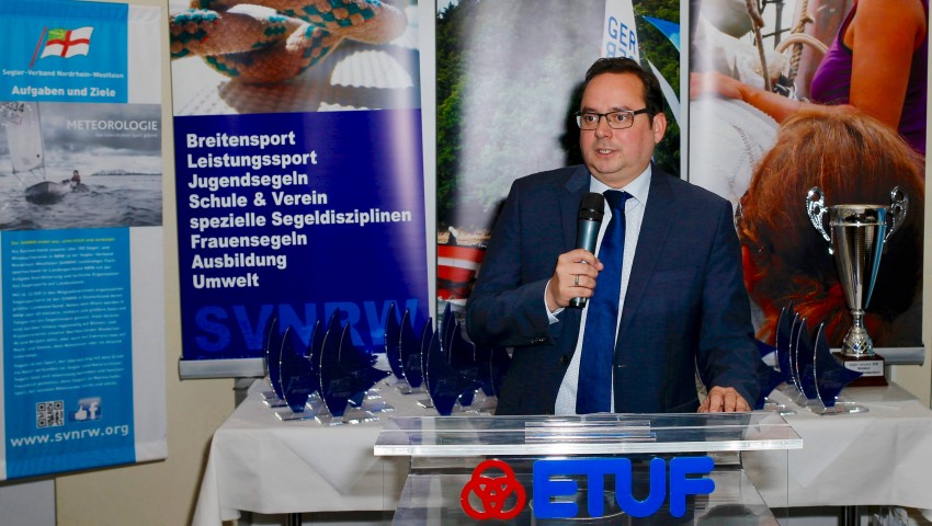 Im Rahmen der Regatta Meister der Landesmeister fand in den Gastronomieräumen des Essener Turn- und Fechtklub e.V. (ETUF) die Pokalverleihung der in 2016 ermittelten Landesmeister statt. Mehr als 60 Pokale fanden ihre neuen Besitzer. Die von Ingo Sanft locker moderierte Veranstaltung wurde mit einem Grußwort vom Oberbürgermeister der Stadt Essen, Thomas Kufen, eröffnet. Aufgelockert mit Livemusik der Oberhausener Skiffleband Knoblauch Nuss genossen die gut 110 Gäste das schmackhafte Buffet. Zufrieden und mit einer reichhaltig gefüllten Sponsorentüte versehen waren sich alle Beteiligten sicher: Das war ein tolles Event.