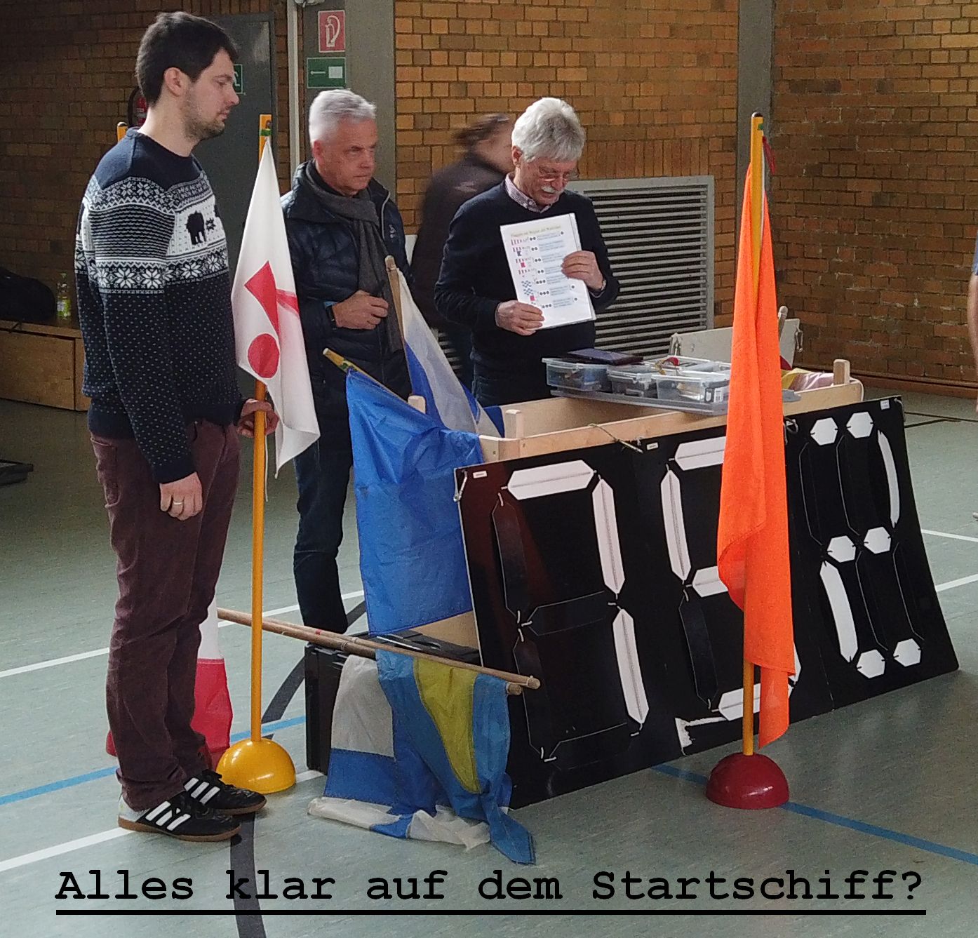 Es begann mit der notwendigen „Inventur“, was gehört alles dazu, und führte in kurzweiliger Form durch fast alle anfallenden Regatta-Themen, wie Startverfahren, Signalisierung und Wettfahrtkommunikation.