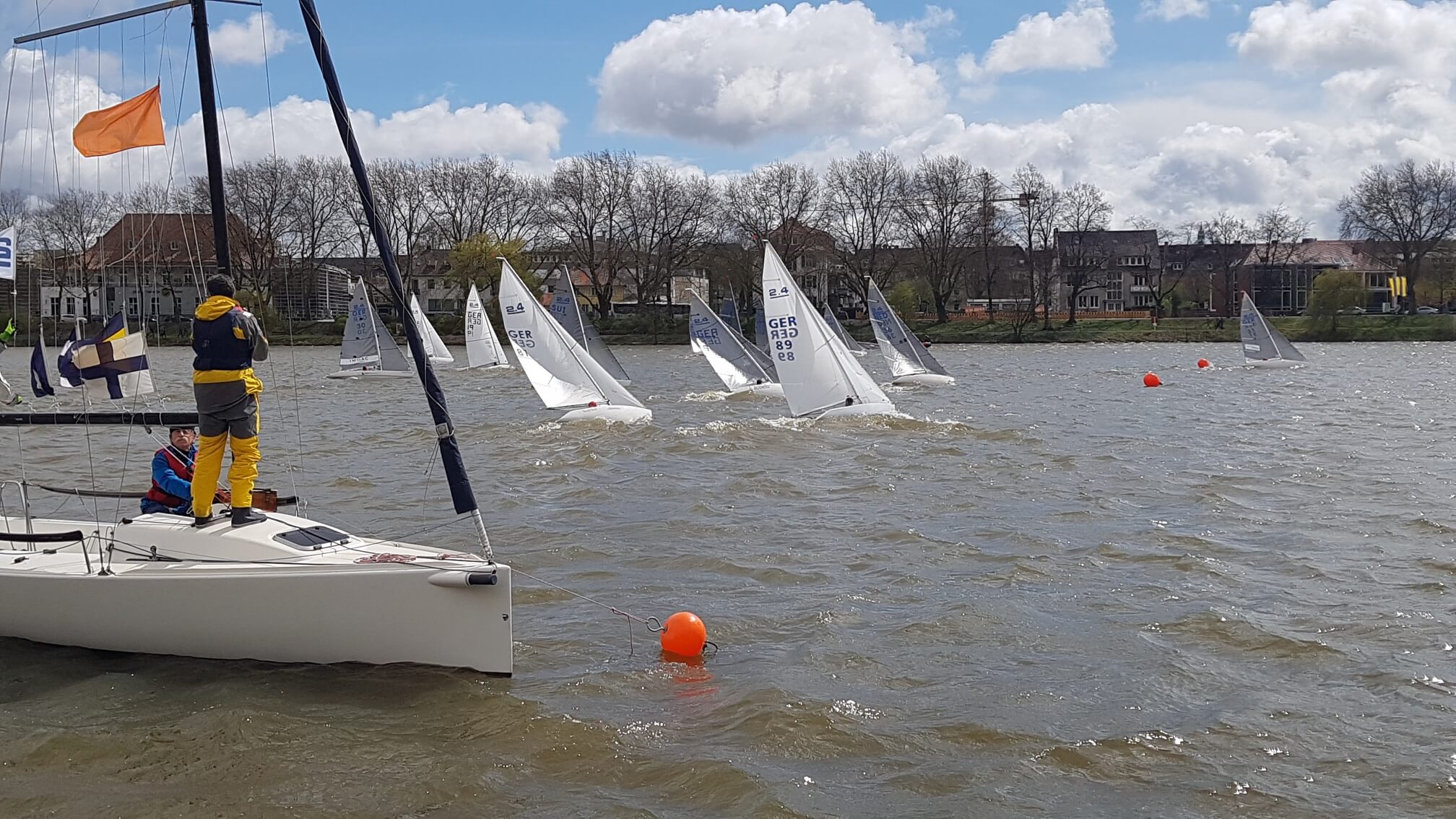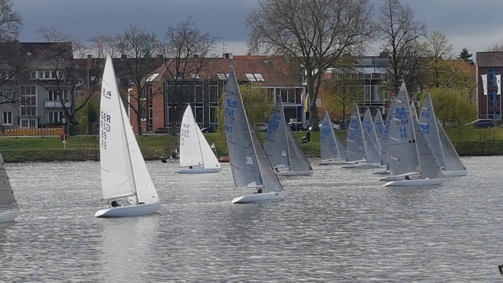 25 Boote hatten gemeldet, am Start des Münsterpokals der 2.4 mR, der Ex paralympischen Einmann- Kielbootsklasse waren 23 Boote die mit harten Bedingungen auf dem sonst so friedlichen Aasee zu kämpfen hatten. Für einige SeglerInnen war es am ersten Regattatag bei starkem und böigem Wind echt zu hart, sie gaben auf. „Urs Infangers Boot ist bei einer unglücklichen Halse fast voll Wasser gelaufen!“