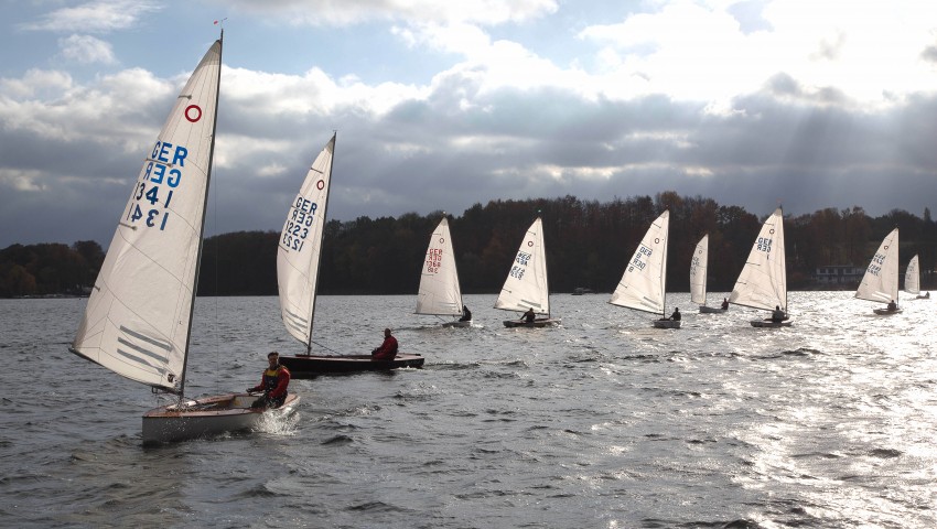 Am Sonnabend gingen bei trockenem Herbstwetter mit leicher Brise aus westlicher Richtung (2 Bft.) von den 23 gemeldeten Seglern insgesamt 22 Teilnehmer an den Start. Immerhin bot der erste Regatta-Tag ein traumhaft herbstliches Bild am Baldeneysee. Die drei Wettfahrten konnten wie geplant stattfinden. Sieger des Tages war der Essener Kai Mölders vom SSCD, dicht gefolgt von Frank Sinde (DSC) und Roland Franzmann (SKS). Ein Novum, dass die starke niederländische Konkurrenz auf den ersten Plätzen nicht mitmischte.