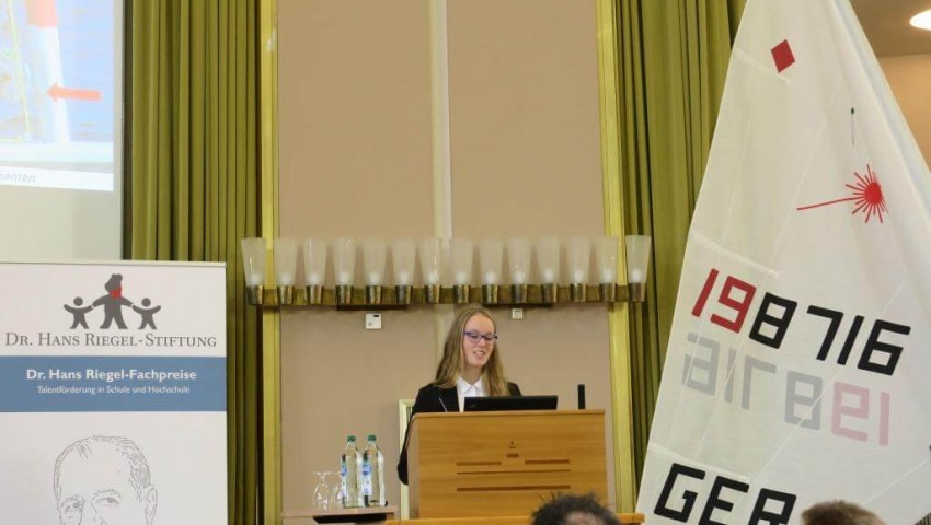 Mal ganz anders war Tabea Mittmann mit GER 198716 auf dem Treppchen. Bei der Verleihung der Fachpreise der Dr. Hans Riegel-Stiftung für die besten naturwissenschaftlichen Facharbeiten in der Aula des Schlosses der WWU gewann Tabea den 1. Preis im Fach Chemie. In Ihrer Facharbeit hatte sie sich um die elektrochemischen Problemstellen des Laser-Riggs gekümmert und auch eine kostengünstige und einfache Lösung mit einer Opferanode zur Vermeidung von Mastbrüchen gefunden. Bei der Vermessung zur Jugend-WM im Laser Radial in Medemblik erntete die Opferanode am Mastunterteil zwar erstaunte Blicke der Vermesser, wurde aber nicht beanstandet.