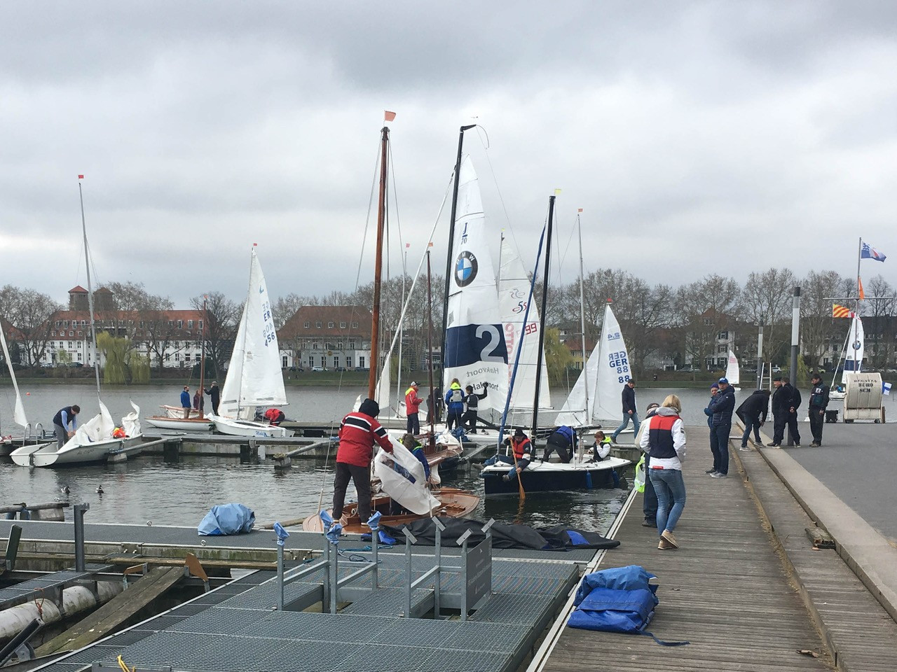 Bei kräftigem bis böigen Wind und etwas ruppiger Kälte startete Regattawart Stephan Pahs mit seinem Team am Sonntagmorgen die Wettfahrten.
