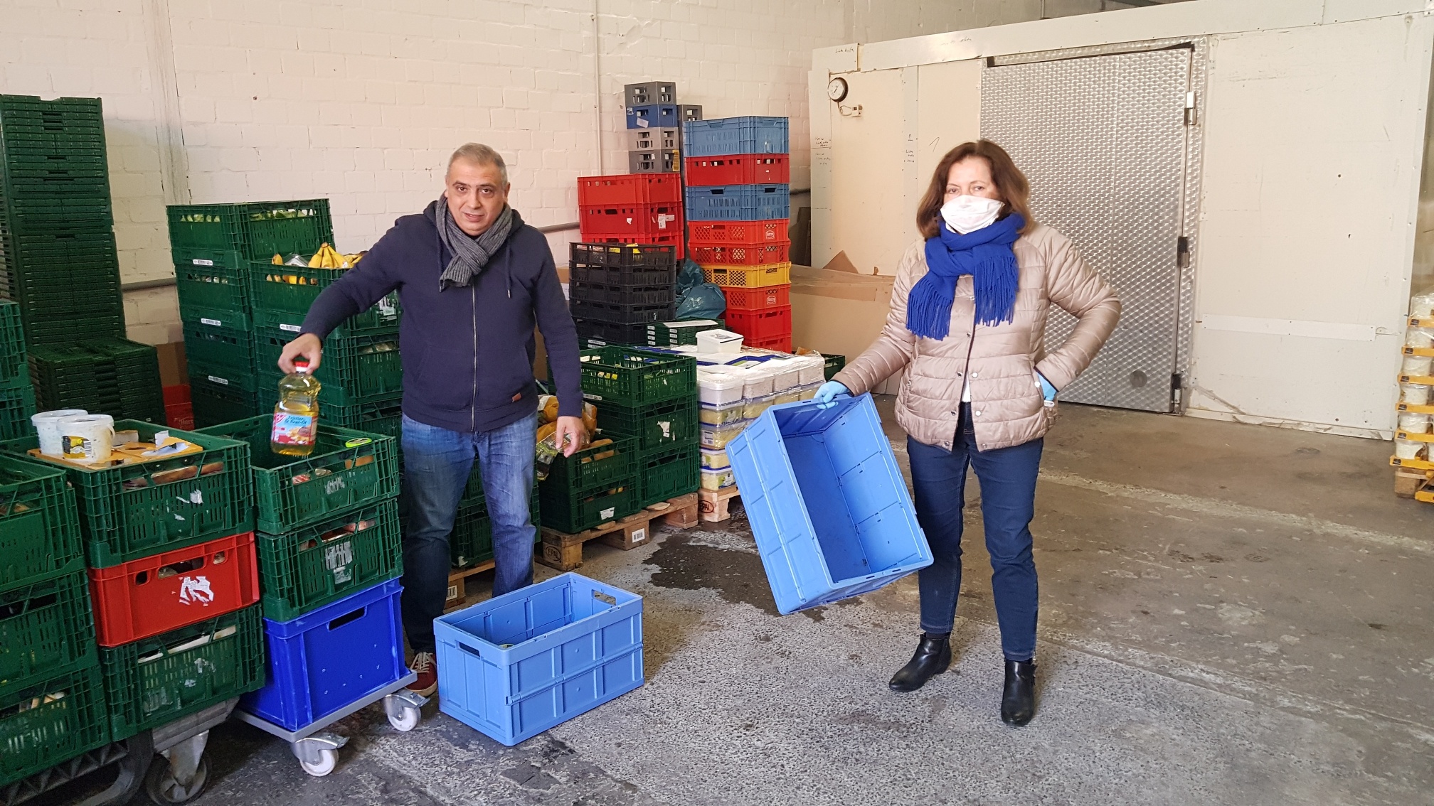 Es gab große Begeisterung bei den Tafel Mitarbeitern über die Mengen an frischen Kartoffeln, Öl, Apfelmus, Lachs, Rübenkraut und Co., die der SCM angeliefert hatte.
