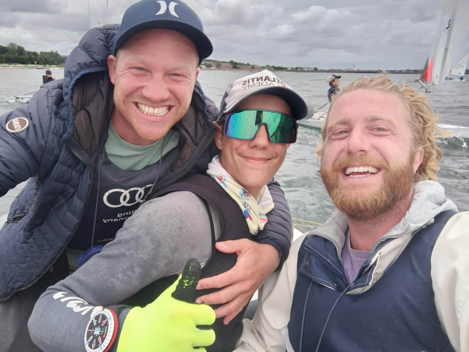 Dann konnte ich mich schon auf dem Wasser riesig mit meinen Trainern Fabian Kirchhof und Sönke Hermann über den Deutschen Meister im ILCA 4 freuen.