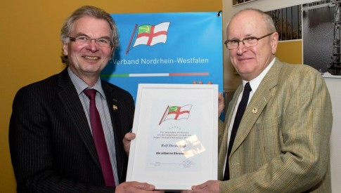 Eine weitere silberne Ehrennadel geht an Rolf Dockenfuß vom Oberhausener Segel-Club, der 1985 nicht nur an der Gründung des Vereins maßgeblich beteiligt war, sondern Vorsitz, Finanzen und Ausbildung übernahm und somit die Basis für einen gut aufgestellten und funktionierenden Verein lieferte.