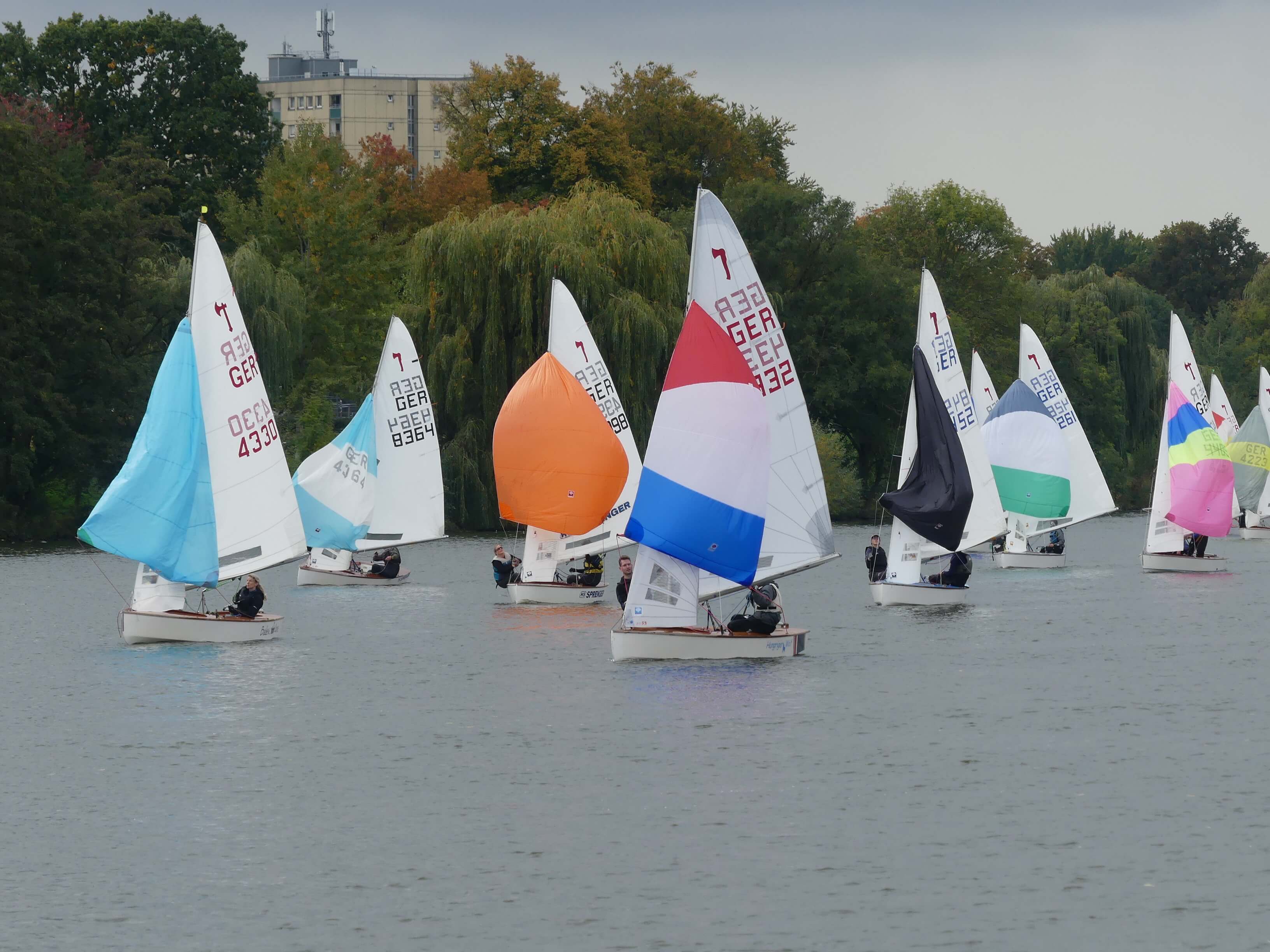 In den Pausen zwischen den Wettfahrten wird dann flink die Crew und das Segel gewechselt. Das nassen und schwierige Wetter hielt die zahlreichen Crews und Ihre BegleiterInnen nicht davon ab , abends in Clubhaus des SCM eine Riesensaison Abschlussfete bis in den Morgen zu feiern. Danach ginge es dann nahe zu umgehend wieder auf die Regattabahn. Nach insgesamt 6 aufregenden Wettfahrten standen dann dieses Mal die Münsteraner Carsten Wiegel/Thorsten Krug ganz oben auf dem Treppchen. Beide haben 2018 den Aaseepokal, der seit gut 50 Jahren läuft schon einmal gewonnen.